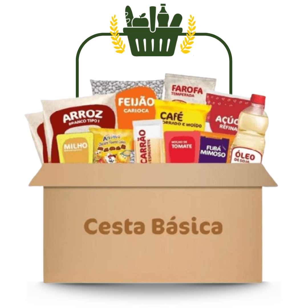 Os produtos da cesta básica incluem, alimentos não perecíveis, produtos de higiene pessoal e limpeza.